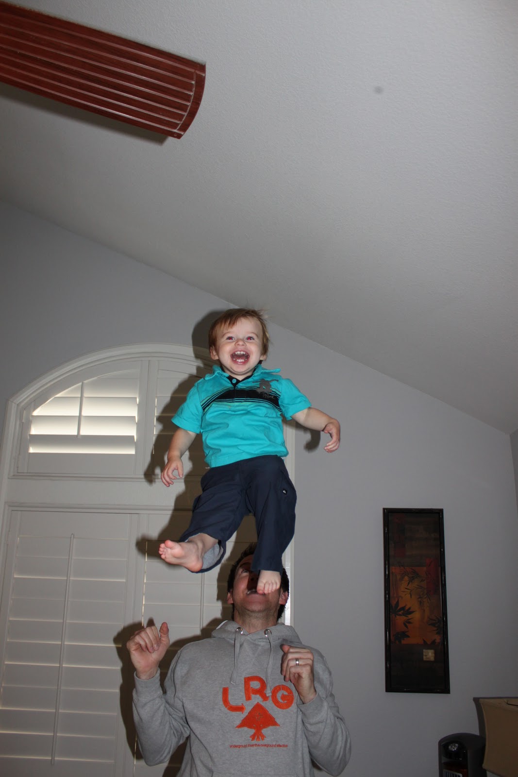 After each toss, Ryden says "more, more, mas.." Daddy's work out for the day