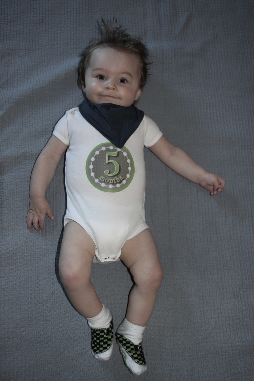 SLEEP PATTERN: NO COMMENT!! Still having issues. Past few nights I get up once to put the pacifier back in and then once more to feed. Then around 6ish he will usually come snuggle with us and sleep for a little longer. I need to stop doing that because I don't want him to get used to that but I will admit that I love morning snuggle time.